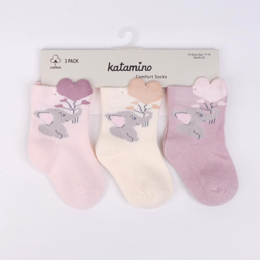 Toptan Mırmır 3'lü 3D Kız Bebek Soket Çorap